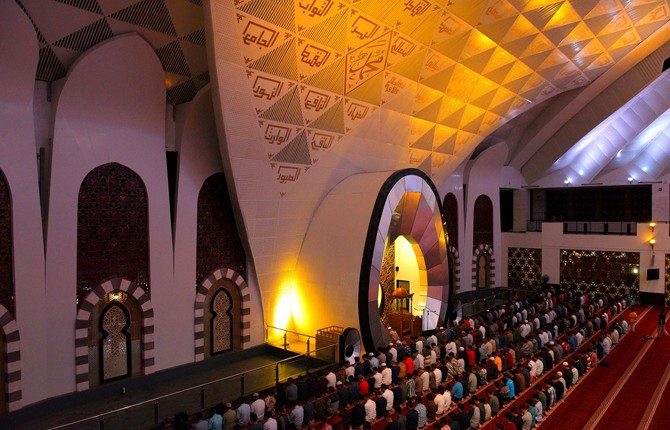 Dengan menggunakan sistem kontrol Color Kinetics, tim manajemen masjid dapat dengan mudah mengubah skema pencahayaan untuk menekankan detail arsitektur atau mengubah suasana keseluruhan di sekitar masjid. Misalnya, Vaya Flood MP RGB (Sekarang spesifik dengan Vaya Flood MP G3, RGBW) dan lampu aksen LED fungsional FlexAccent Track diprogram untuk menerangi aula utama dengan warna matahari terbenam untuk shalat Magrib dan dengan beludru biru langit malam. untuk sholat Isya. Di luar ruangan, lampu Vaya Flood MP RGB eksterior menonjolkan ukiran motif tradisional di fasad. Menara yang megah tampak bersinar di malam hari di bawah pencahayaan Vaya Flood MP Warm White.